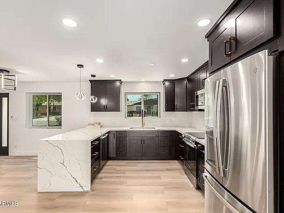 All new plumbing, lighting, cabinets, countertops, stainless steel appliances, backsplash & tons of natural light. There are 3 bedrooms with 2 beautiful bathrooms downstairs, one being ensuite.