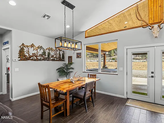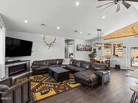 Outside, the property offers endless possibilities with an attached 4-car garage, horse amenities including corrals, and room for all your recreational vehicles. The expansive deck provides the perfect setting to enjoy stunning sunsets over the San Francisco Peaks.